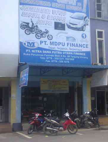 Mitra dana putra utama finance. Mitra Solusi Pembiayaan Kendaraan Anda PT Mitra Dana Putra Utama Finance DKI Jakarta, Indonesia PT Mitra Dana Putra Utama Finance adalah salah satu perusahaan pembiayaan kendaraan nasional yang berkembang pesat & telah memiliki lebih dari 150 Cabang & Kantor Posko yang tersebar di seluruh wilayah di Indonesia. Lihat profil lengkapku Profil Mitra Dana Putra Utama Finance PT - Qerja Mitra Dana Putra Utama Finance (MDPU FINANCE) adalah sebuah perusahaan pembiayaan yang memiliki izin untuk menjalankan kegiatan Sewa Guna Usaha, Anjak Piutang, kartu kredit dan Pembiayaan Konsumen. MDPU FINANCE didirikan di Jakarta dan berfokus pada pembiayaan konsumen khususnya kendaraan bermotor. Perlu Dana Tunai!!!Hanya dengan jaminan BPKB PT.Mitra Dana Putra Utama Finance adalah sebuah perusahaan pembiayaan Mobil dan sepeda Motor,dan telah exist sekitar 8 tahun untuk didaerah pekanbaru dan Provinsi Riau.PT. Mitra Dana Putra Uta,ma Finance telah memiliki lebih dari 420 cabang diseluruh indonesia.Pelayanan terbaik adalah motto kami,dengan perhitungan rate atau bunga yang rendah adalah sebagai modal dasar kami untuk melayani anda ... . selamat datang di pt.mitra dana putra utama finance posko belitung pt.mdpuf posko belitung sudah berdiri di pulau belitung sejak 03 maret 2007 sampai dengan sekarang.posko belitung dipimpin oleh seorang kapos (kepala pos) yang bernama nur hamid atau yang biasa di panggil pak ajin.lokasi kantor posko belitung terletak di jl.simpang air ketekok.