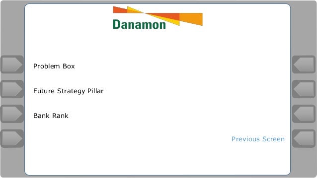 PROFIL BANK DANAMON | tyadwiwardani Profil Perusahaan PT Bank Danamon Indonesia Tbk. didirikan pada 1956. Nama Bank Danamon berasal dari kata "dana moneter" dan pertama kali digunakan pada 1976, ketika perusahaan berubah nama dari Bank Kopra. Pada 1988, Bank Indonesia meluncurkan paket reformasi perbankan yang dikenal dengan "Paket Oktober 1988" atau PAKTO 88. Tujuan utama PAKTO 88 adalah untuk membangun… Bank OCBC NISP: Annual Report 2017 - IslamicMarkets.com Citi Islamic Investment Bank Bank Danamon Create FREE account or Login to add your comment ... INISIATIF DI TAHUN 2018 Bank OCBC NISP akan terus fokus untuk mencapai visi dan misi Bank dan target di tahun 2018 dengan merumuskan prioritas strategi yang ditetapkan, yaitu: 1. Memperkuat model bisnis Bank dan mengoptimalkan sinergi internal untuk ... Corporate Value - Bank Danamon MISI Danamon berupaya untuk mewujudkan visinya melalui tiga misinya, yaitu: Danamon bertekad untuk menjadi "Lembaga Keuangan Terkemuka di Indonesia" yang keberadaannya diperhitungkan. Danamon berkeyakinan bahwa kekuatannya dalam intermediasi keuangan dalam perekonomian menjadikannya katalis bagi penciptaan kesejahteraan dan kemakmuran. Turnaround Strategy Bank Danamon - SlideShare DANAMON LAMA DANAMON BARU Menjadi bank nasional terbaik Mewujudkan visi dengan menjalankan tiga nilai utama; integriras yang tinggi, transparansi dan professional Menjadi bank nasional pilihan nasabah di sektor Konsumen dan UKM Menjadi bank yang Memberikan kepuasan kepada pelanggan.